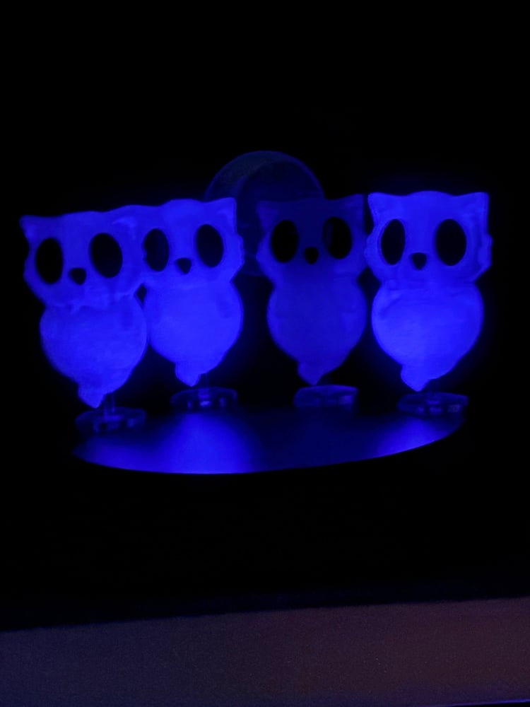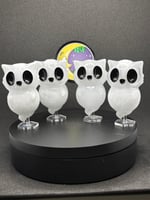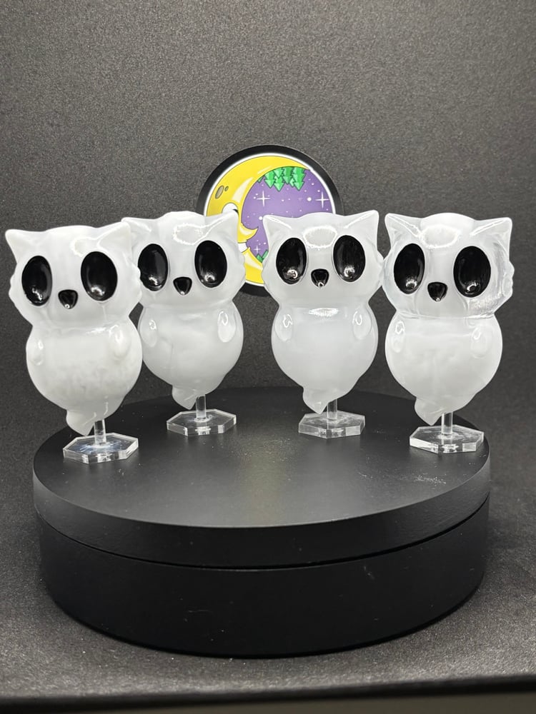 Made from cast resin. These little kitty’s also glow in the dark. Each Ghost Kitty is poured using the same ratio of clear and white resin, but the pattern of each one is slightly different.